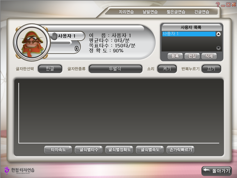 - 개인별 맞춤 설정: 타자 속도, 오타율 등 개인별 통계 정보를 제공하여, 자신의 약점을 파악하고 개선할 수 있도록 돕습니다. 또한, 인터페이스, 글꼴, 배경색 등 다양한 설정을 통해 자신에게 맞는 환경을 구성할 수 있습니다.